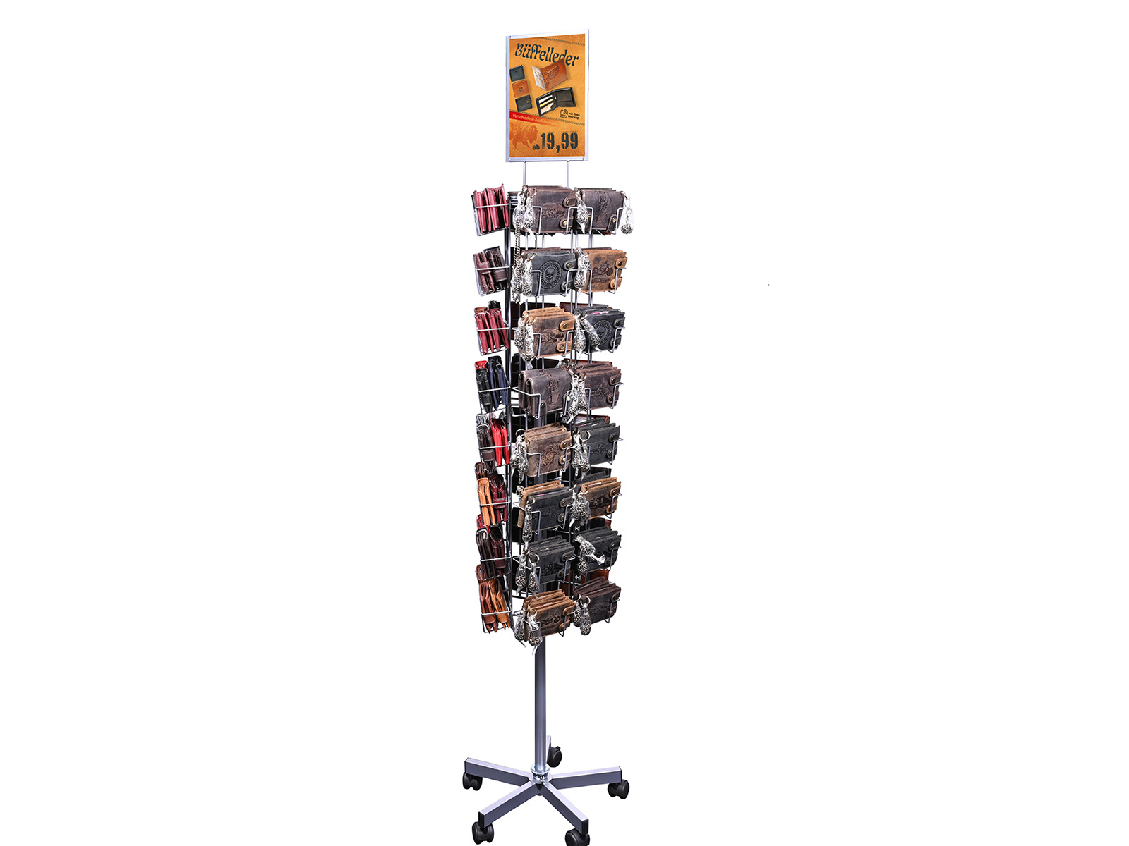 Geldbörsen Büffelleder Ständer komplett 96-tlg.