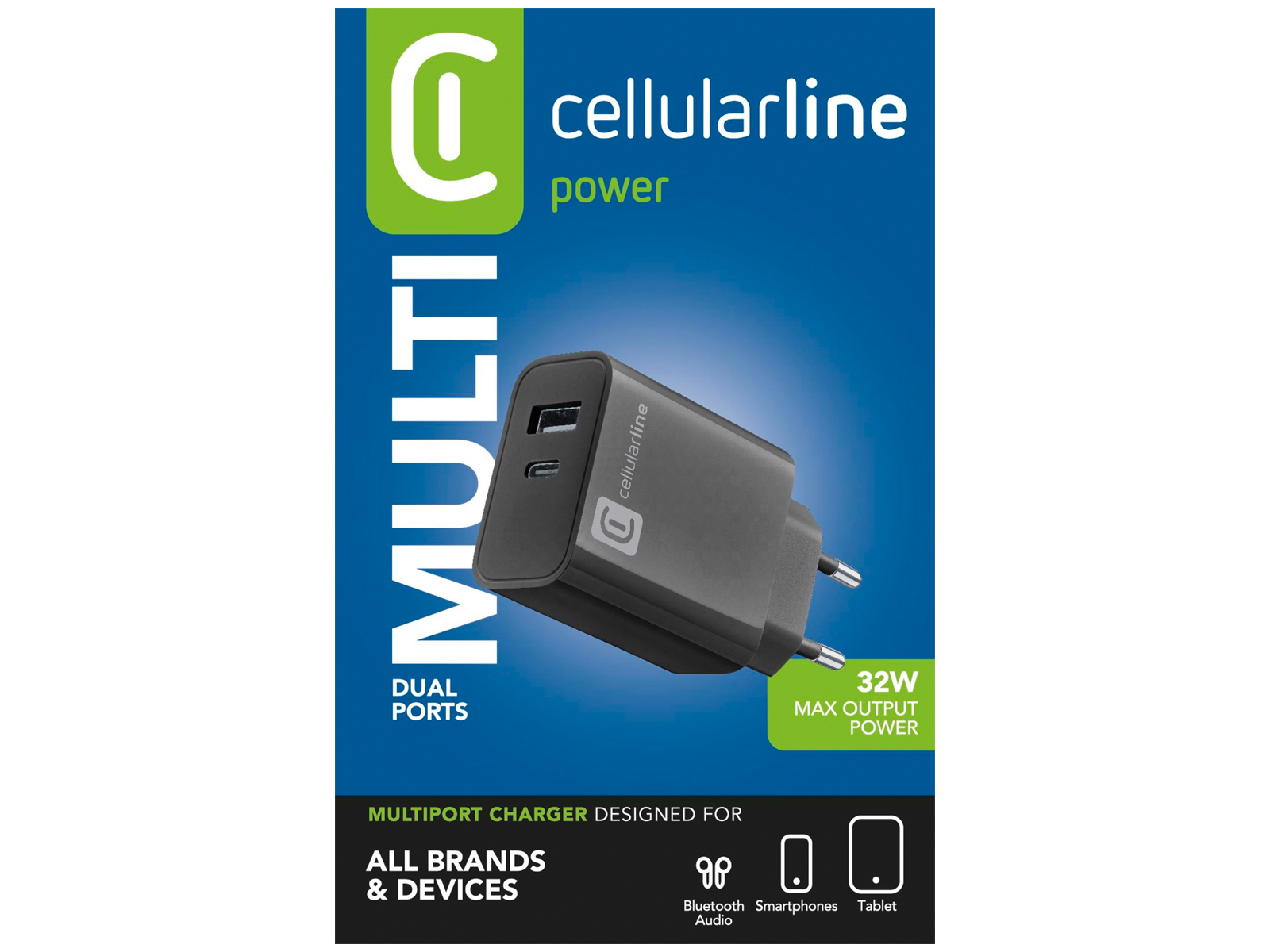 cellularline Ladenetzteil 1xUSB-A, 1xUSB-C 32W, schwarz